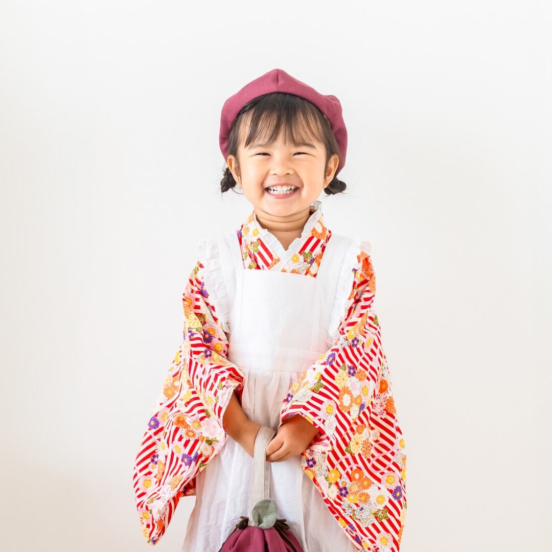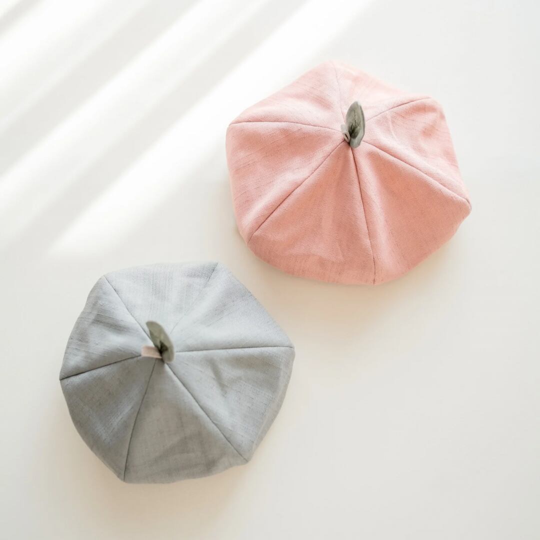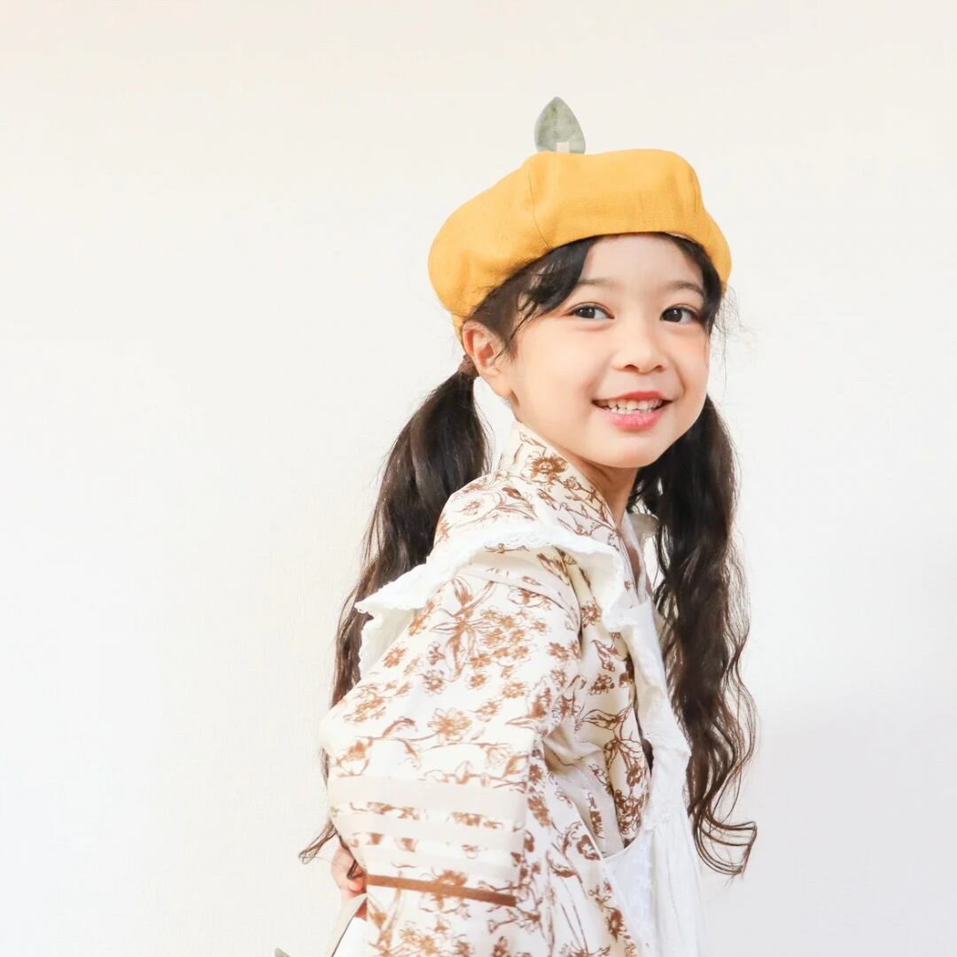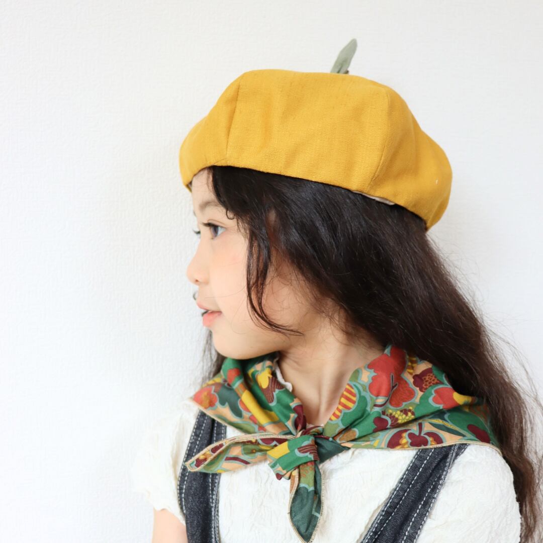 色合わせが難しいお着物でも、ベレー帽を被るだけで
