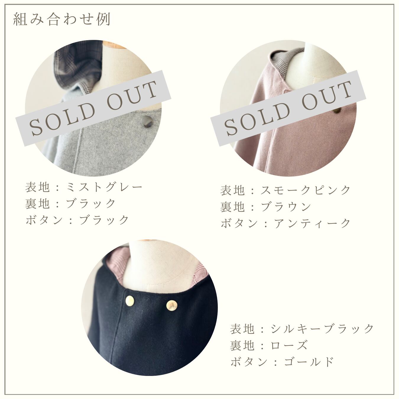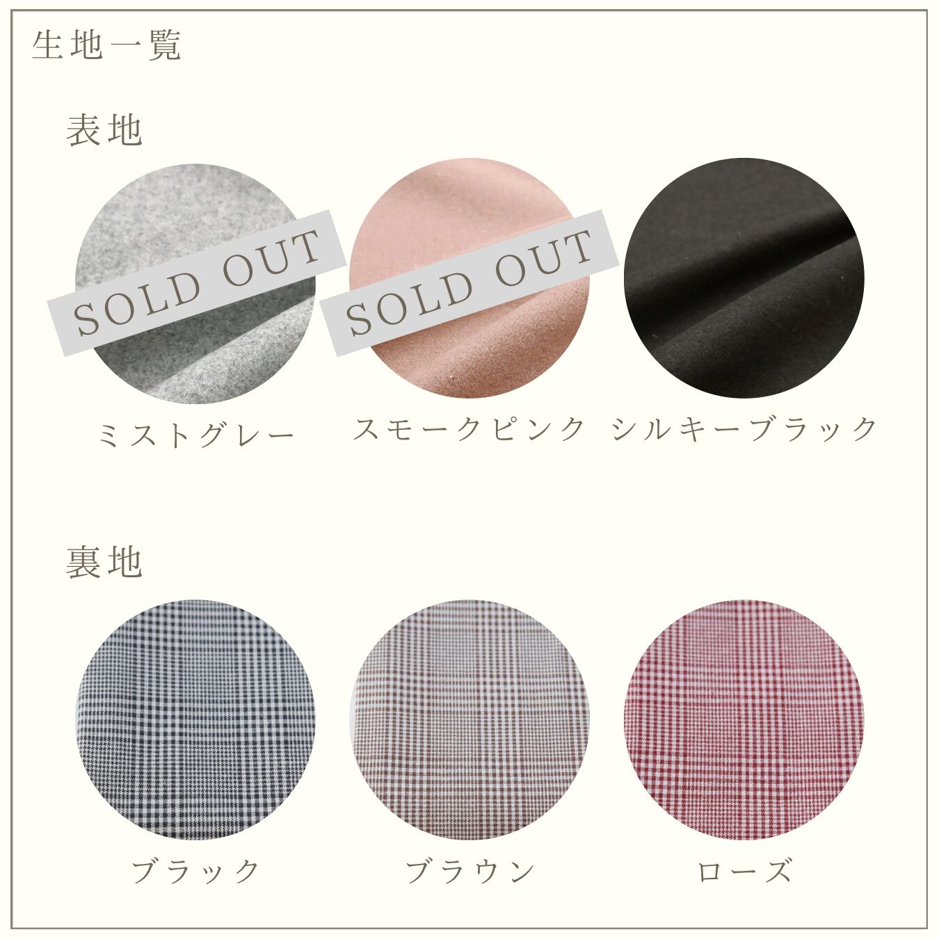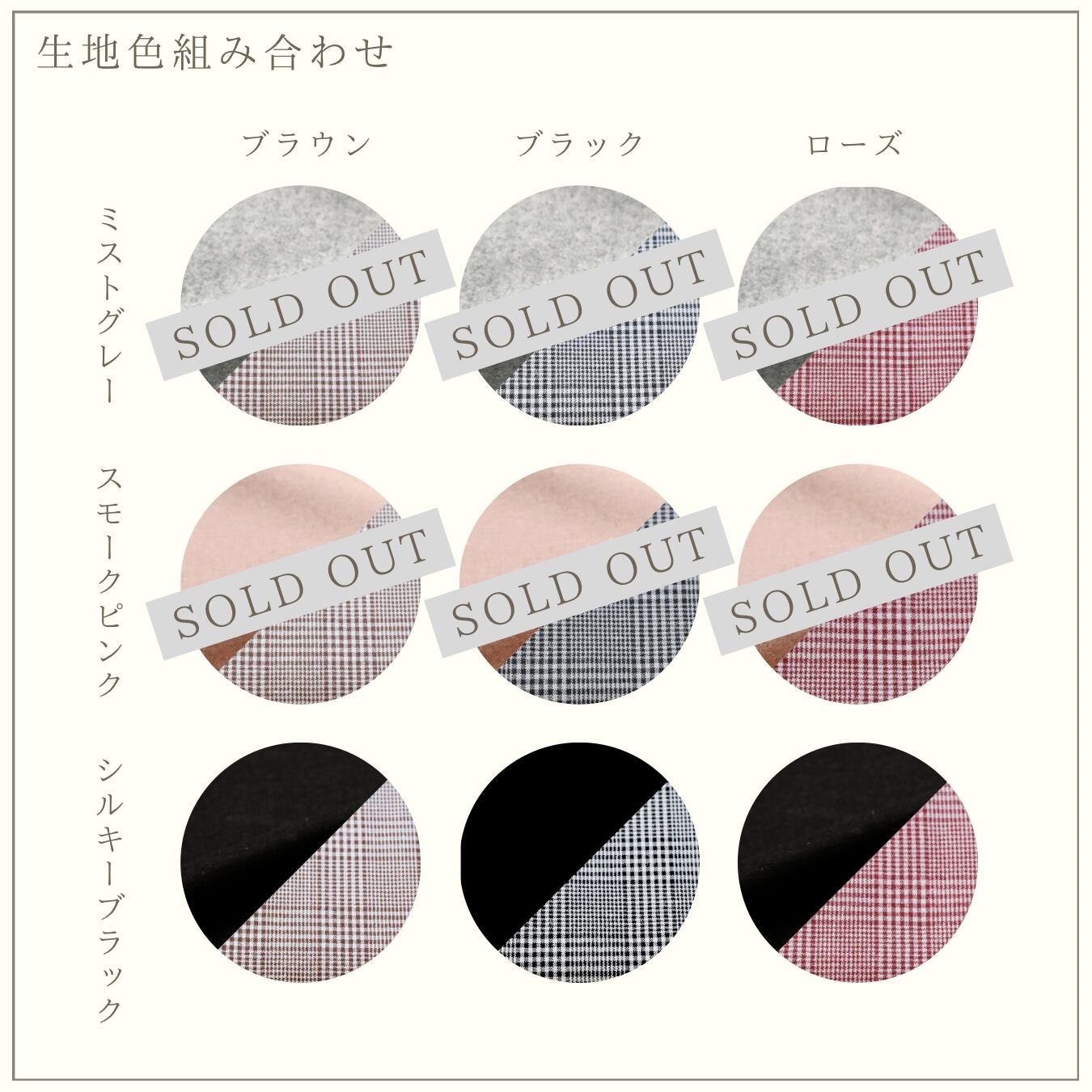 ミストグレー、スモークピンクは、完売いたしました。