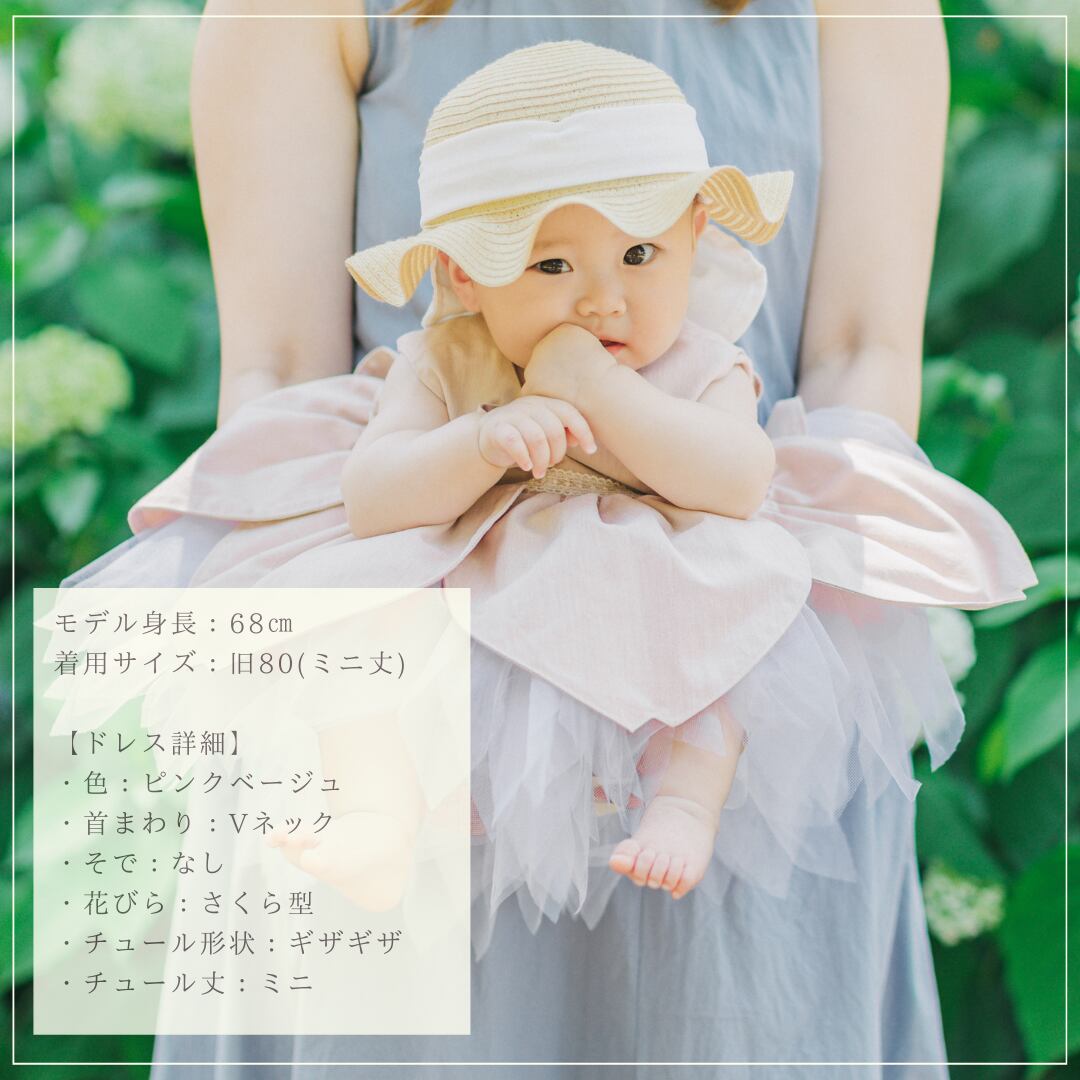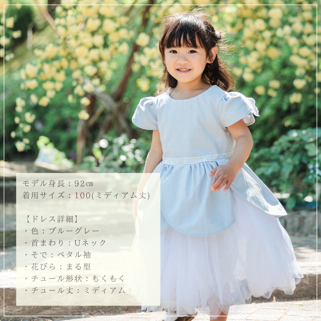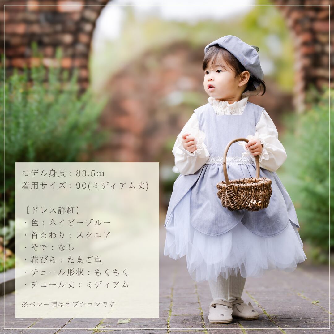 チュールの透け感を幻想的に美しく見せるため、スカートの裏地は短めの仕様となっております。