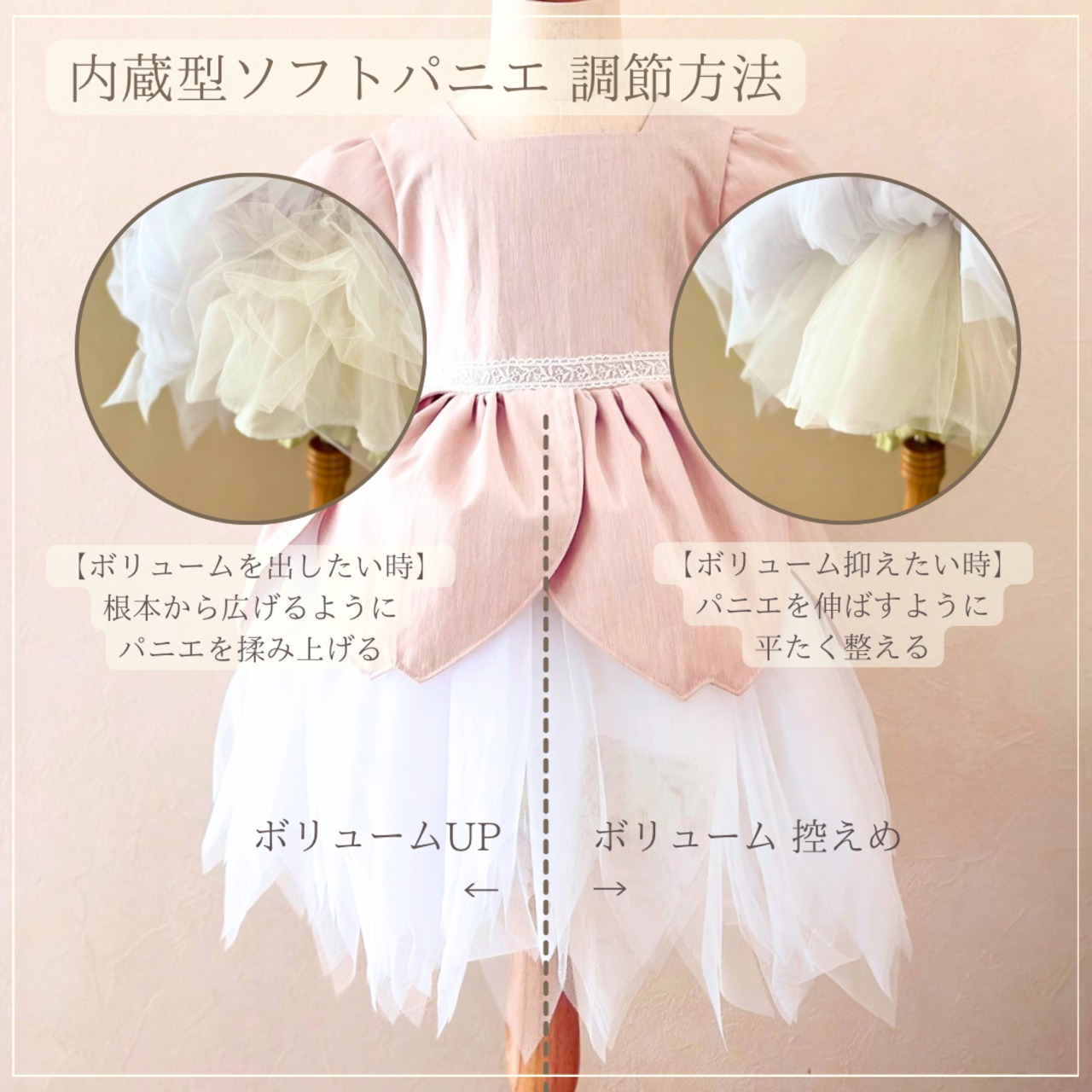 チュールスカートの中には、ふんわりシルエットを作る、ソフトパニエを内蔵しています。
